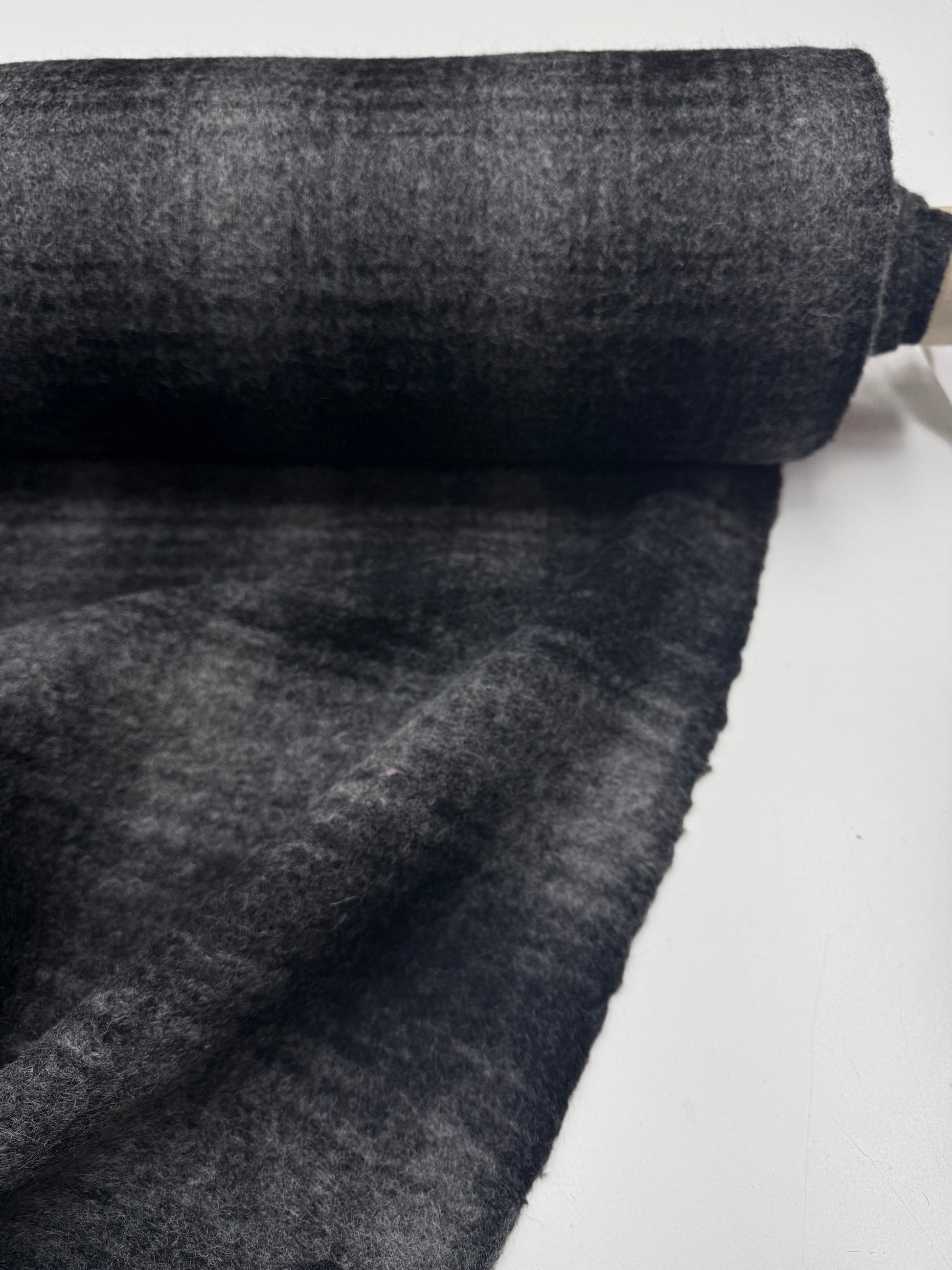 Wol mix furry ruit gebreid grijs zwart.